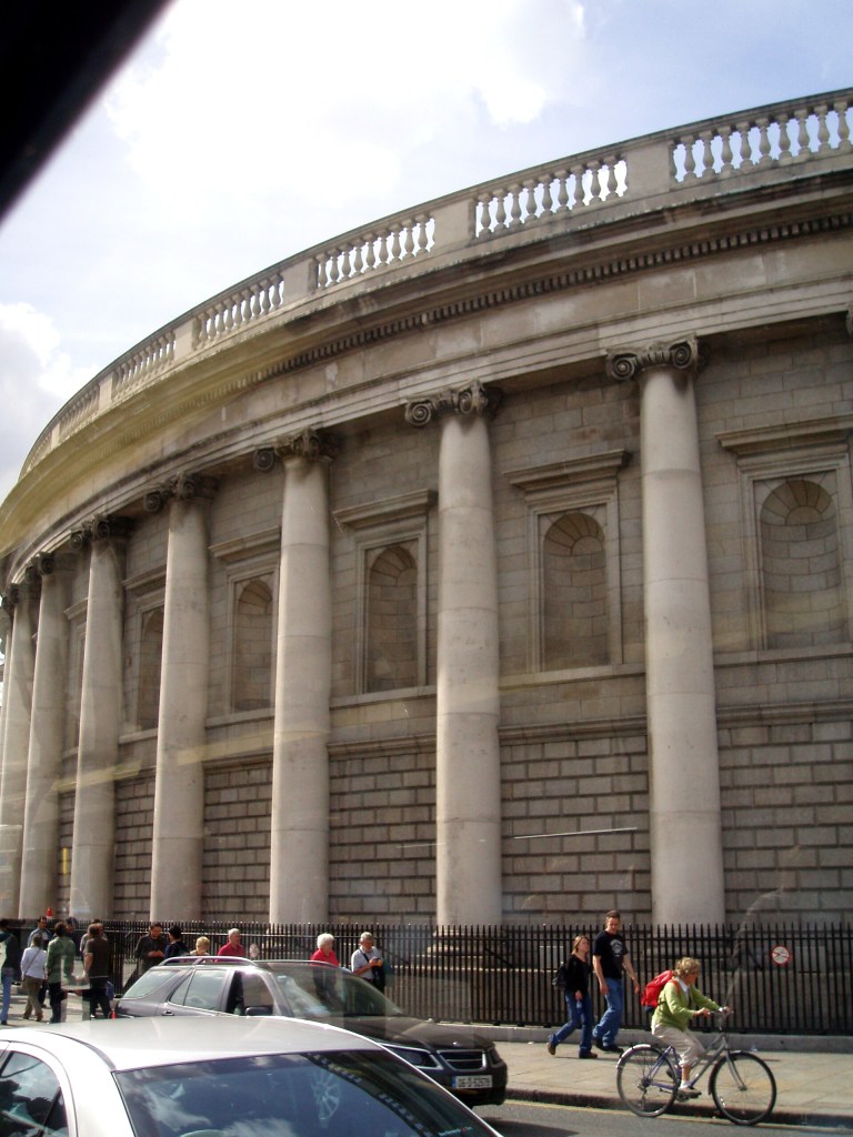 Gandon also designed the Four Courts in Dublin. Like Edward Lovett Pearce, he favoured Palladian and neoclassical design. One of his most prestigious commissions, which came in 1785, was to extend Pearce’s Houses of Parliament. He built the curved screen wall which links his new Corinthian portico for the House of Lords facing College Street to Pearce’s original building.