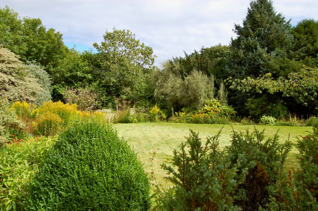 “The gardens are flanked with fields with a developing arboretum and there is a very pretty driveway with mature trees leading to the house.
