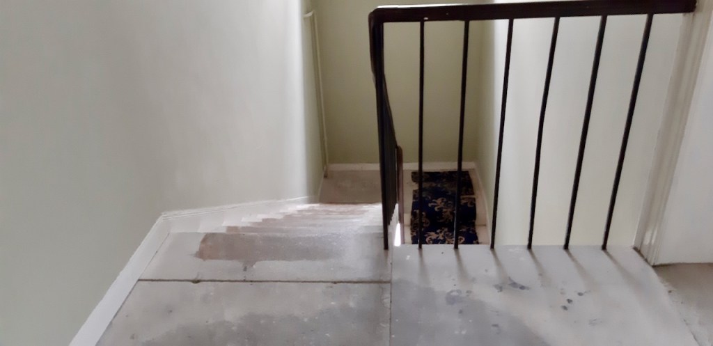 This is the landing at the top of the staircase. It opens into many bedrooms, a bathroom, another small landing, and one door is purely decorative, to keep symmetry. Note the detailing of the windows, over every second door, which let in light to the hall – all original.