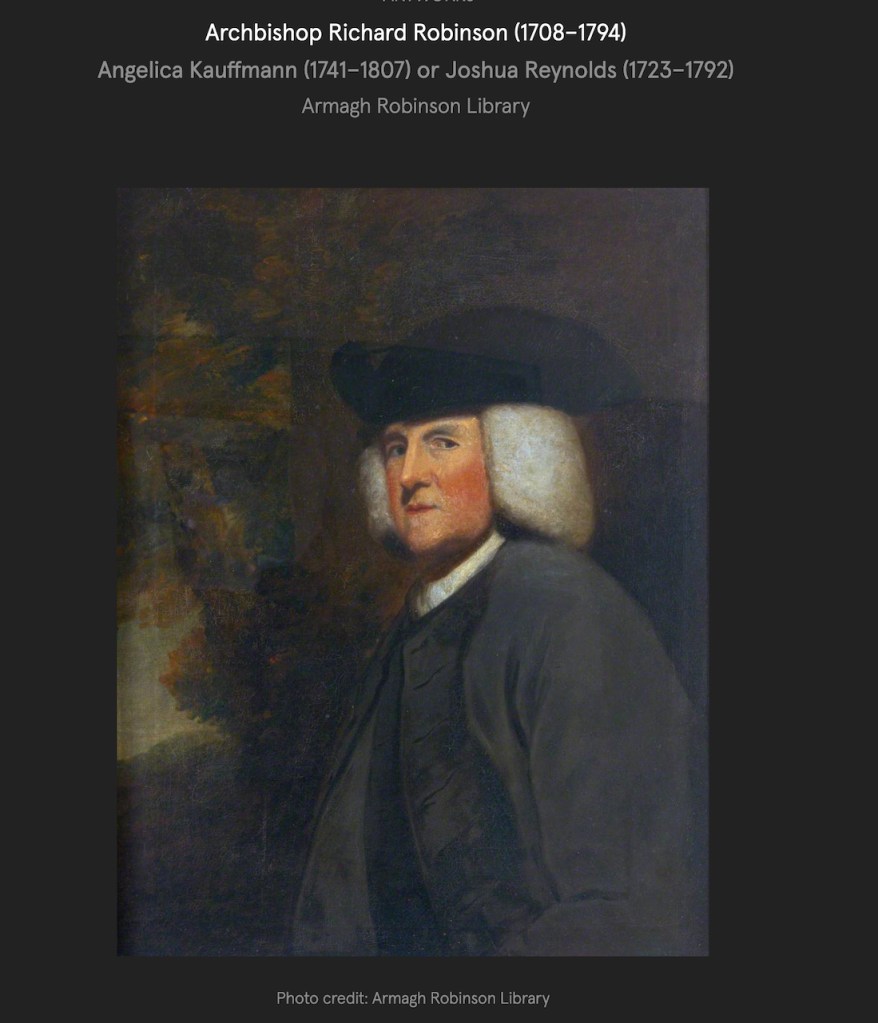 “After coming to Ireland as chaplain to the Duke of Dorset in 1751, he eventually rose through the ranks of the church before becoming Archbishop of Armagh in 1765. Prior to Robinson’s appointment, most Archbishops had spent little time in Armagh which in 1759 had been described as ‘an ugly, scattered town’. Primate Robinson is credited with much of Armagh’s transformation to the beautiful Georgian city it is today. His many contributions to the city include the Armagh Robinson Library, the Armagh Observatory, the Gaol, the Armagh Infirmary and the Archbishop’s Palace, Chapel and Palace Stables.