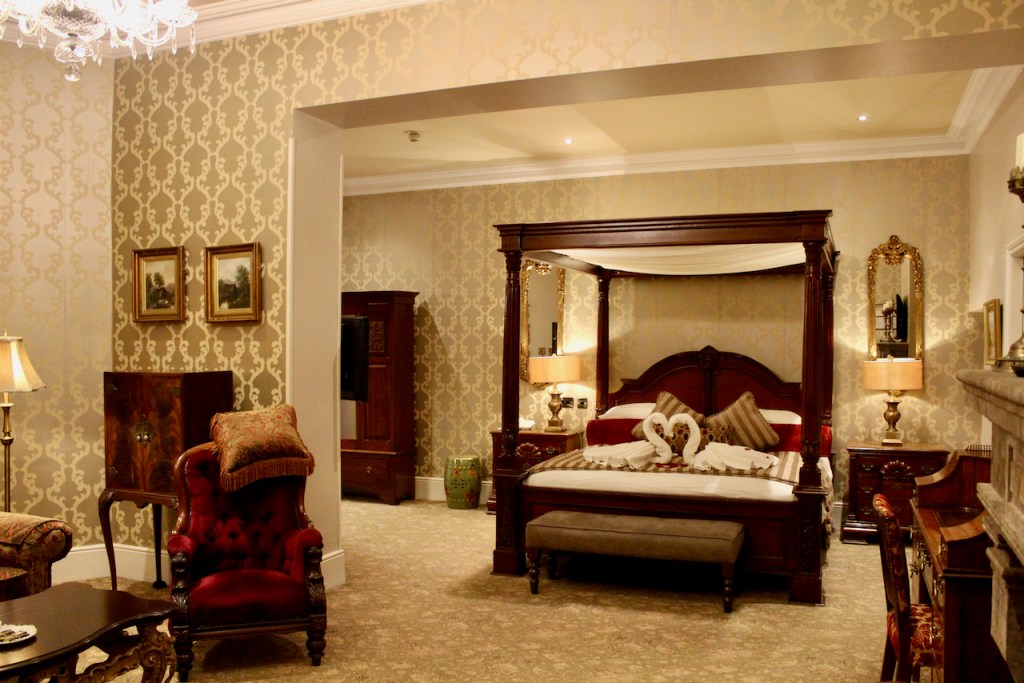 We visited some big houses that are not on the Section 482 revenue list when we were in County Cork last year during Heritage Week, including Doneraile Court and Fota, both open to the public and well worth a visit. [1] If I run out of places to write about on the section 482 list, I will write about them! But I still have to write about our visit to Cabra Castle, County Cavan, before Christmas last year! [2] We had a wonderful treat of being upgraded to a bedroom suite in the Castle, the Bridal Suite, no less, with our own rooftop jacuzzi.