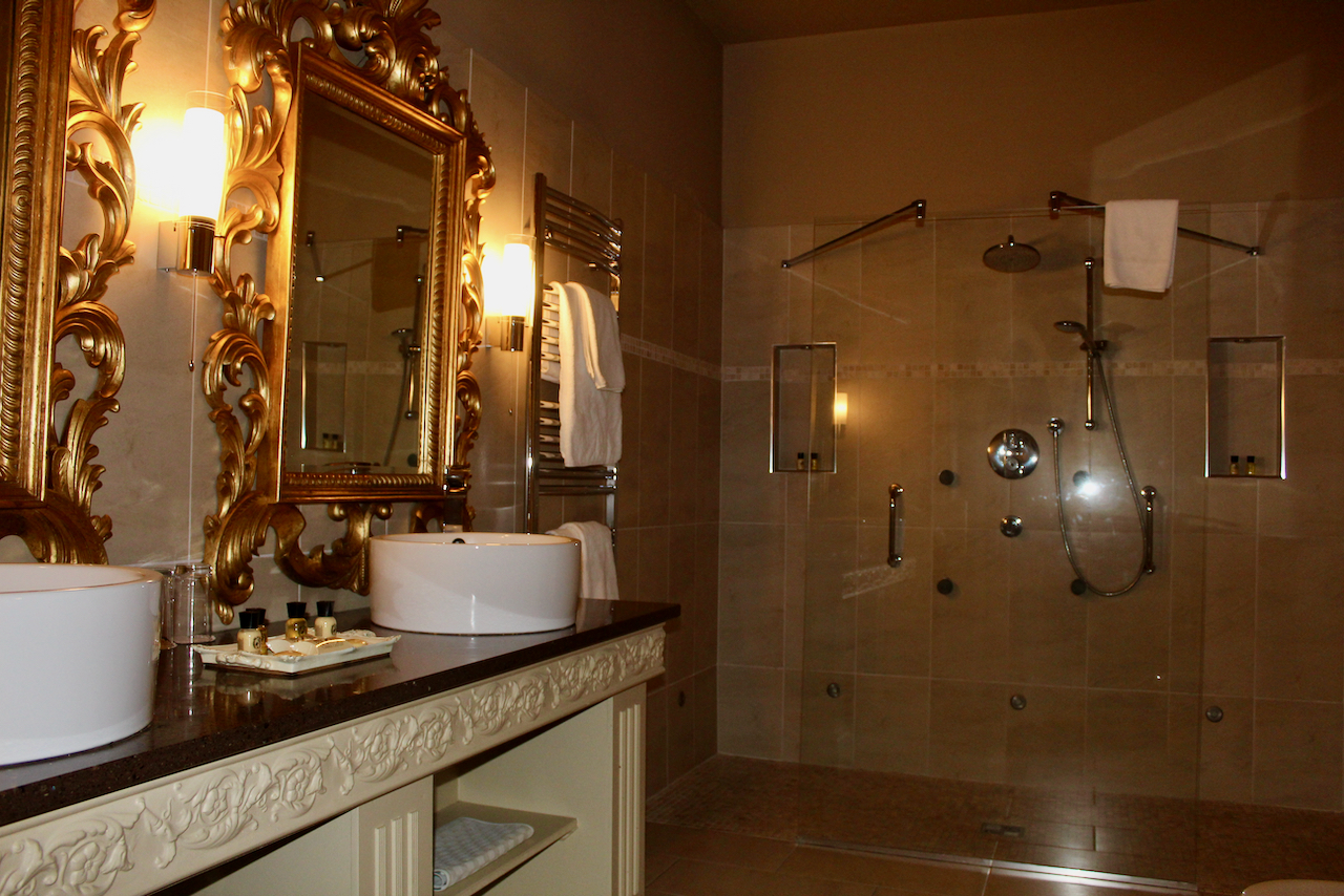 The ensuite bathroom has the largest walk-in shower that I’ve ever seen, and the muted lighting feels particularly luxurious.