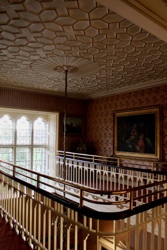 On the second floor the staircase hall is surrounded by a gallery, and has ceiling work of thin fretting.