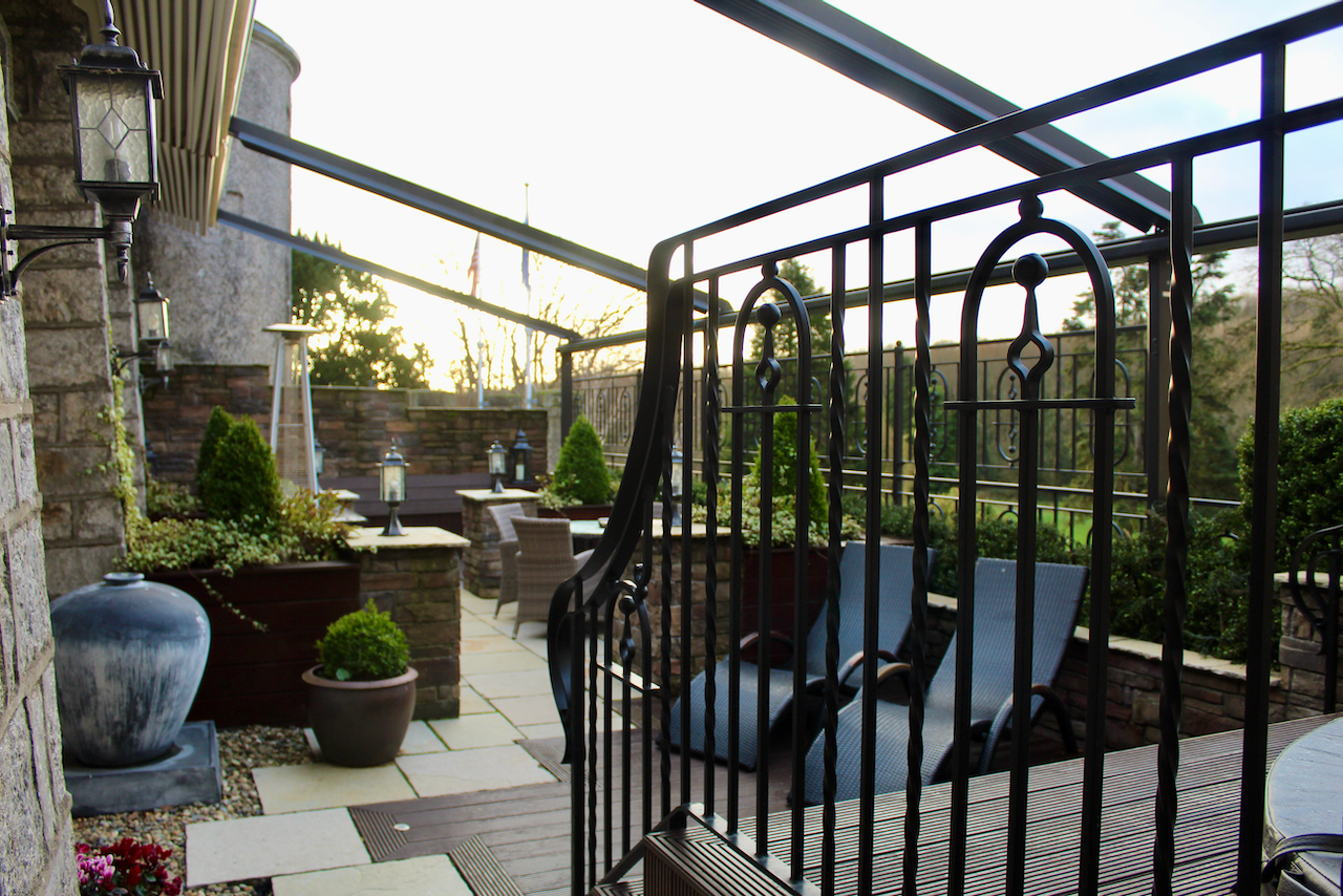 Beyond Mitzi’s Garden a path leads to the car park and further self-catering accommodation, beyond the tennis court. A branch of this path and driveway curves around to the courtyard at the back of the castle. One can also enter this courtyard through the castle. The courtyard originally contained the stables, but these have been converted into more hotel accommodation. There are about sixty rooms in the courtyard.