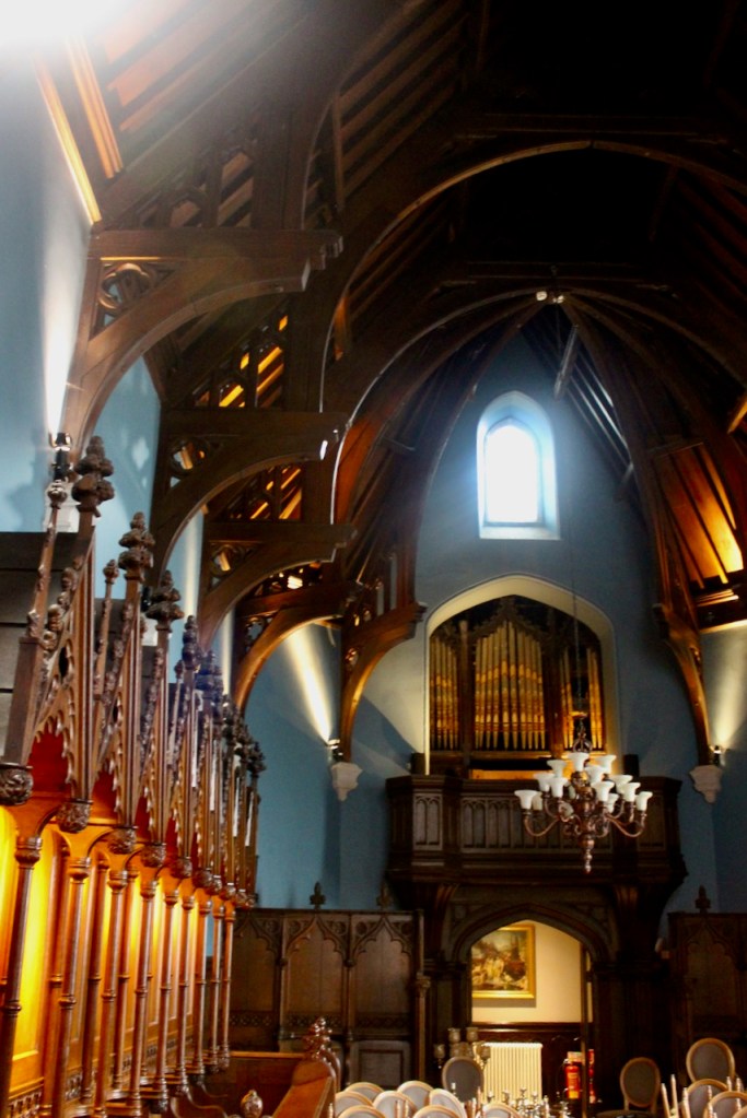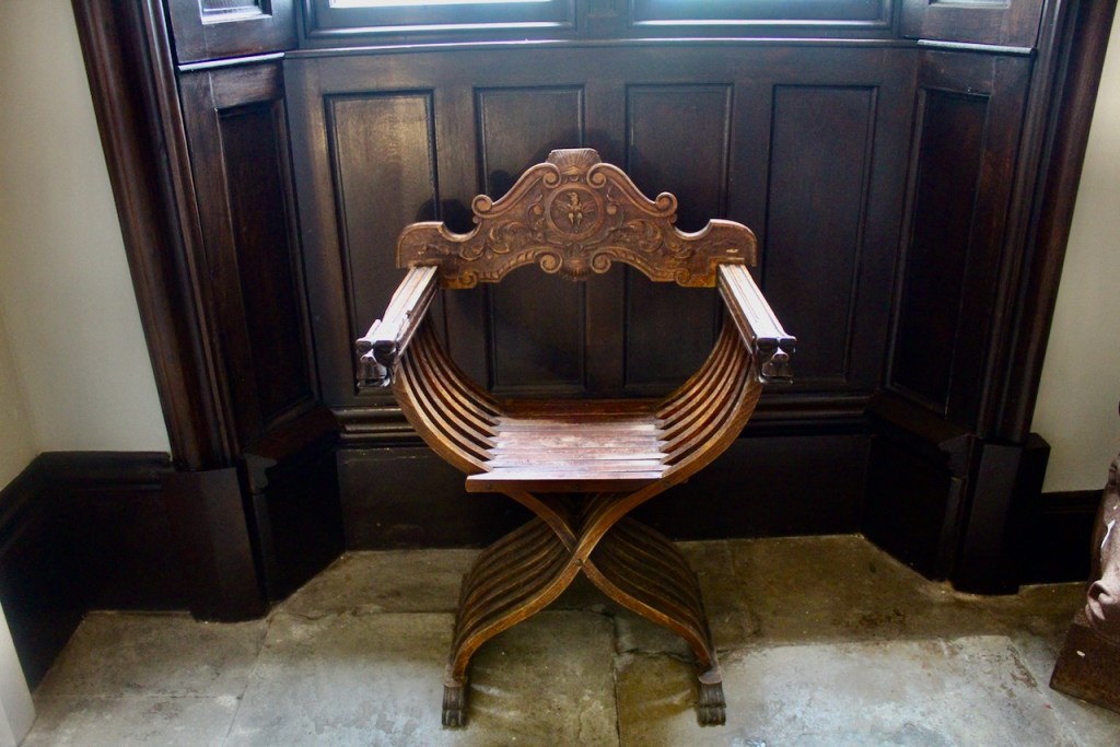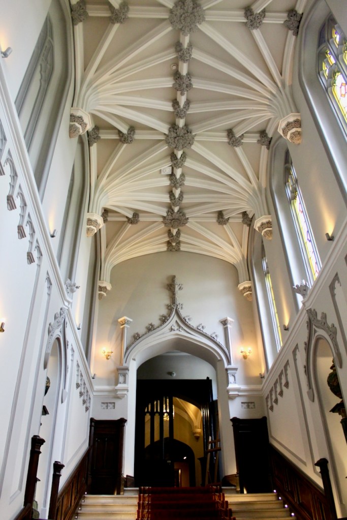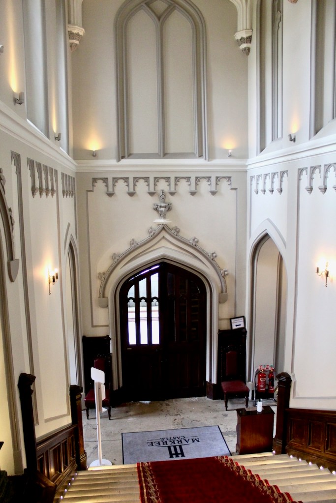 At the top of the vaulted entrance staircase one can go through to the main reception, or to the left, to the chapel.