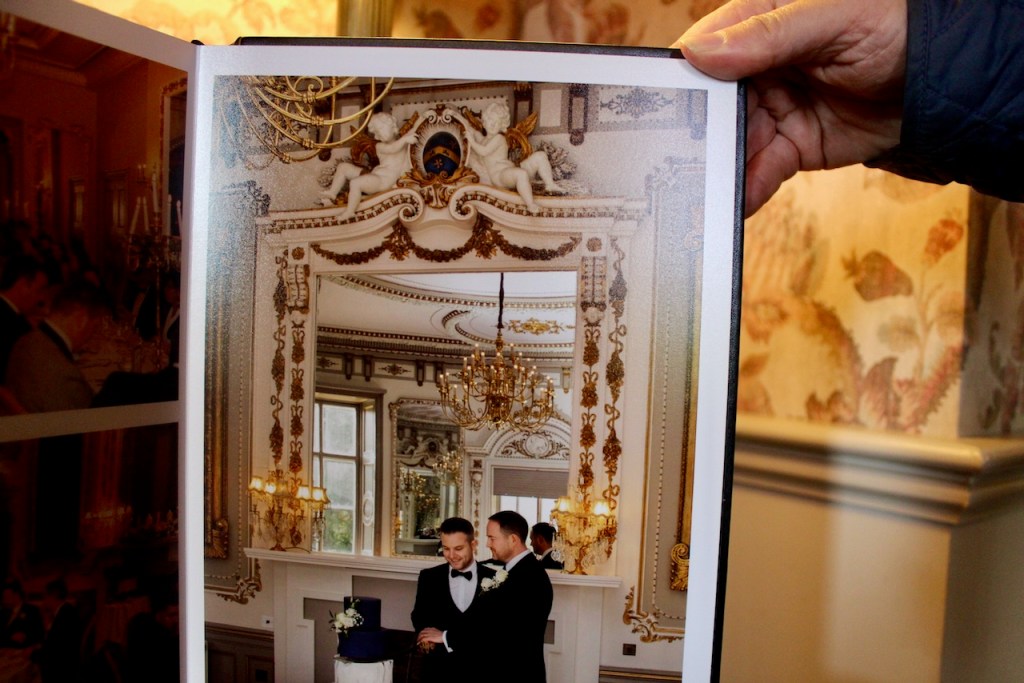 A long library divided by pairs of grey marble Ionic columns has been formed out of Johnston’s entrance.