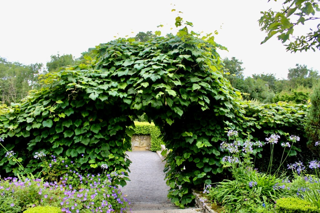 The gardens themselves are an example of a romantic era garden, and date from the 1790s. The gardens embody the theory of the Picturesque. Robert O’Byrne tells us that “the picturesque is associated with painting (it derives from the Italian term ‘pittoresco’ meaning ‘in the manner of a painter’). It was thus used by a key figure in the evolution of the concept William Gilpin who in his 1768 Essay on Prints defined picturesque as being ‘expressive of that peculiar kind of beauty, which is agreeable in a picture.’ Essentially the picturesque as proposed by Gilpin and others offers an aesthetic experience between the extremes of the sublime (which induces an emotion akin to terror [as theorized by Edmond Burke, whom we came across at Annaghmore in County Sligo]) and the beautiful which relies on symmetry and a calm-inducing order. The inspiration for landscapes that might be classified as picturesque came from artists of the previous century, most notably Claude Lorrain and Gaspard Poussin. In Ireland one of the most perfect expressions of this kind of landscape design can be found at Kilfane, County Kilkenny where theories of the picturesque were put into practice with enchanting results.“