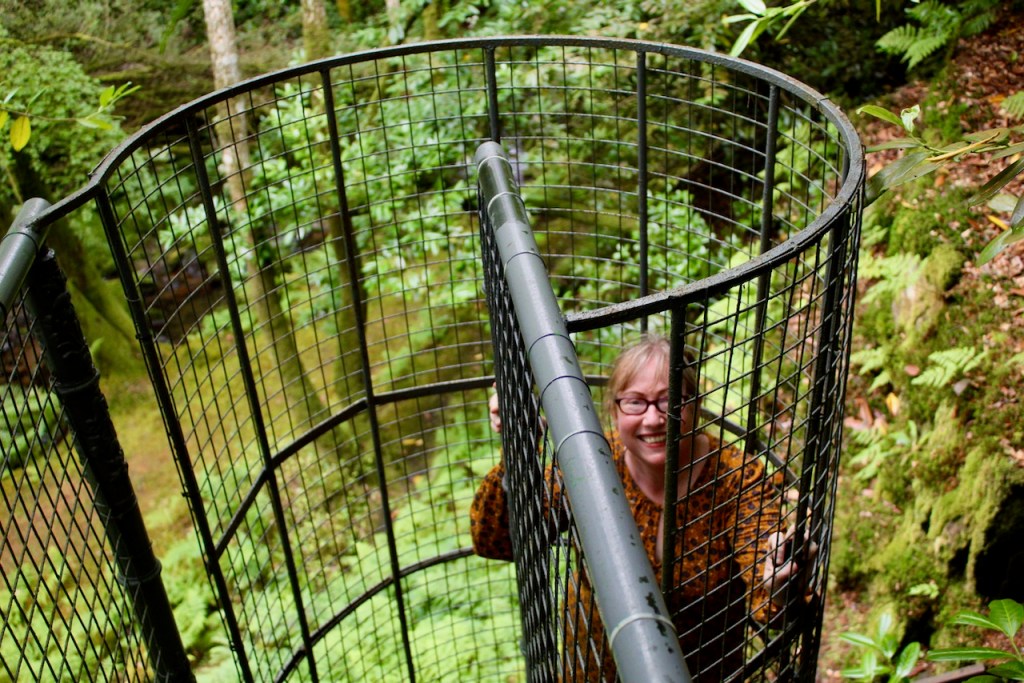 There are two ways then to reach the cottage and waterfall – we chose to take the longer Cliff Walk. I’m glad we did, as we approached the glen from above, which gave us lovely views of the cottage. To get down to the glen, we had to climb down a spiral staircase!