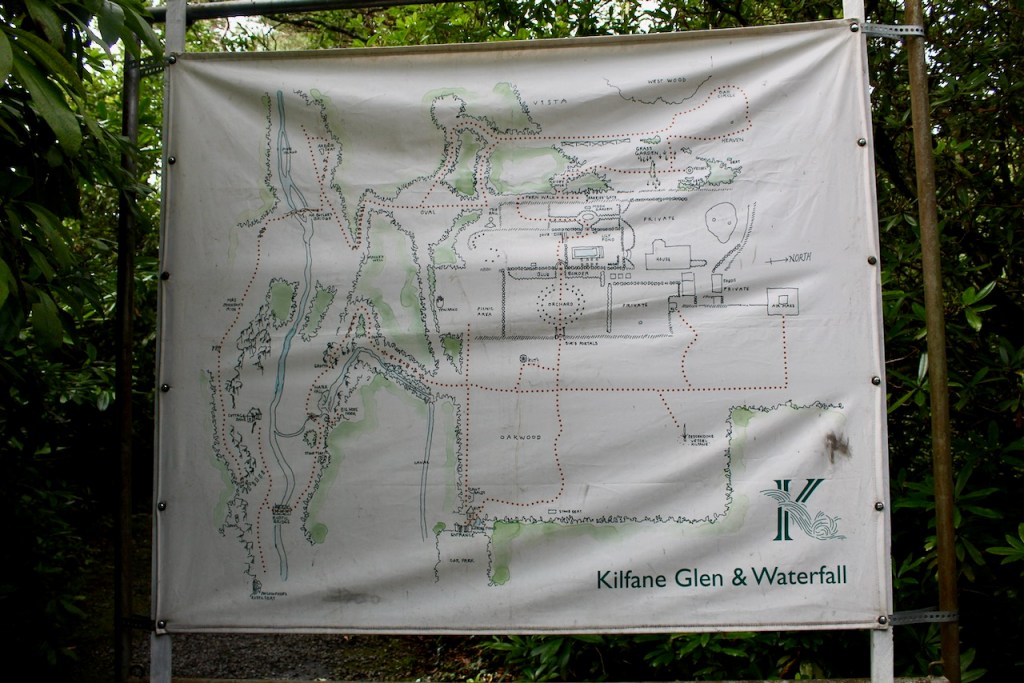 The yellow house next to the gardens looks gorgeous but it is a private residence. It is not the main house at Kilfane. The main house was built in 1798 for the Power family (it may have been added on to a previously existing house, owned by the Bushe family, who owned the land before the Powers married into it [1]) and has a three storey five bay centre block with three bay wings, which are single-storey at the front and two storey at the back. This house is located a distance from Kilfane Glen and Waterfall, and we did not see it. For more on the life in that big house, see the chapter on Kilfane in Mark Bence Jones, Life in an Irish Country House. Constable, London (1996), and for more on the old main house at Kilfane, see Robert O’Byrne’s entry about it on his Irish Aesthete website. [2]
