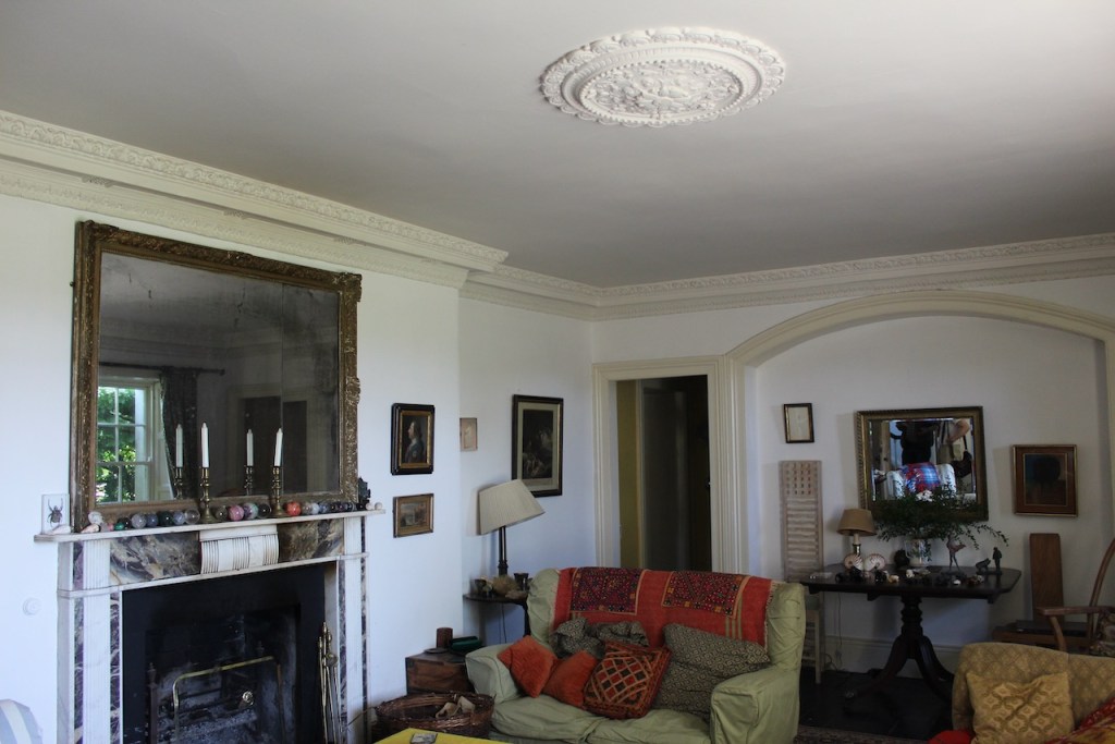 Although a farmhouse, it has lovely coving in the drawing room, a ceiling rose and marble fireplace.