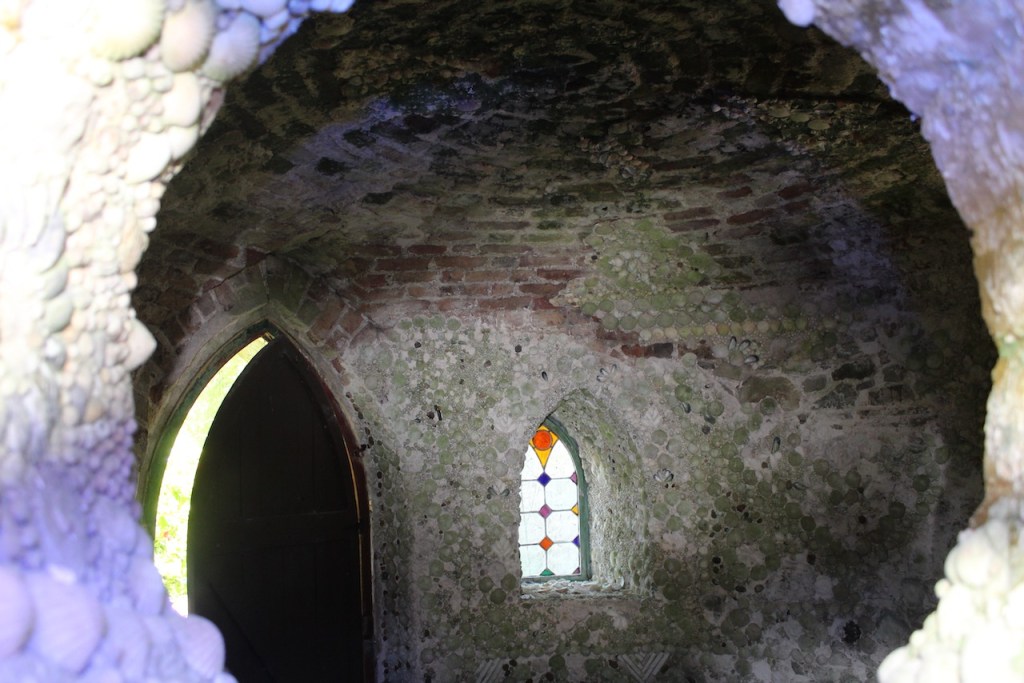 The tower, called a “Cockle Tower,” is decorated with shells, but unfortunately it needs to be stabilised before one could safely enter. I did manage to see the inside of the shell tower by looking through a window. We saw a shell house in Curraghmore in County Waterford, and Mary Delany is famous for her shell work. There is also one nearby at Carton Estate.