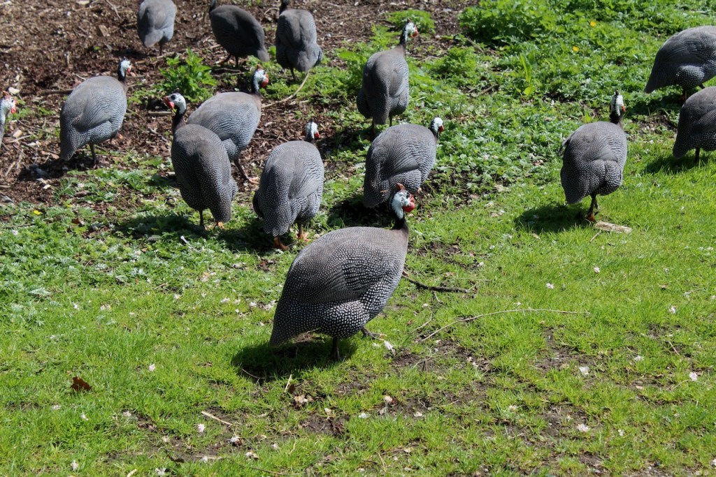 We heard the distinctive cry of a peacock and one strutted in the yard. Guinea fowl ran around in a large gang, alerting owner Michael to our visit.
