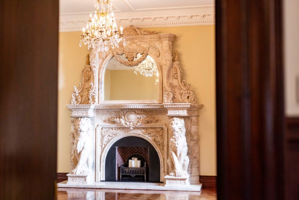 The bedroom next to this has “D.A.” in the fireplace, which is probably for George’s mother Dorothea.