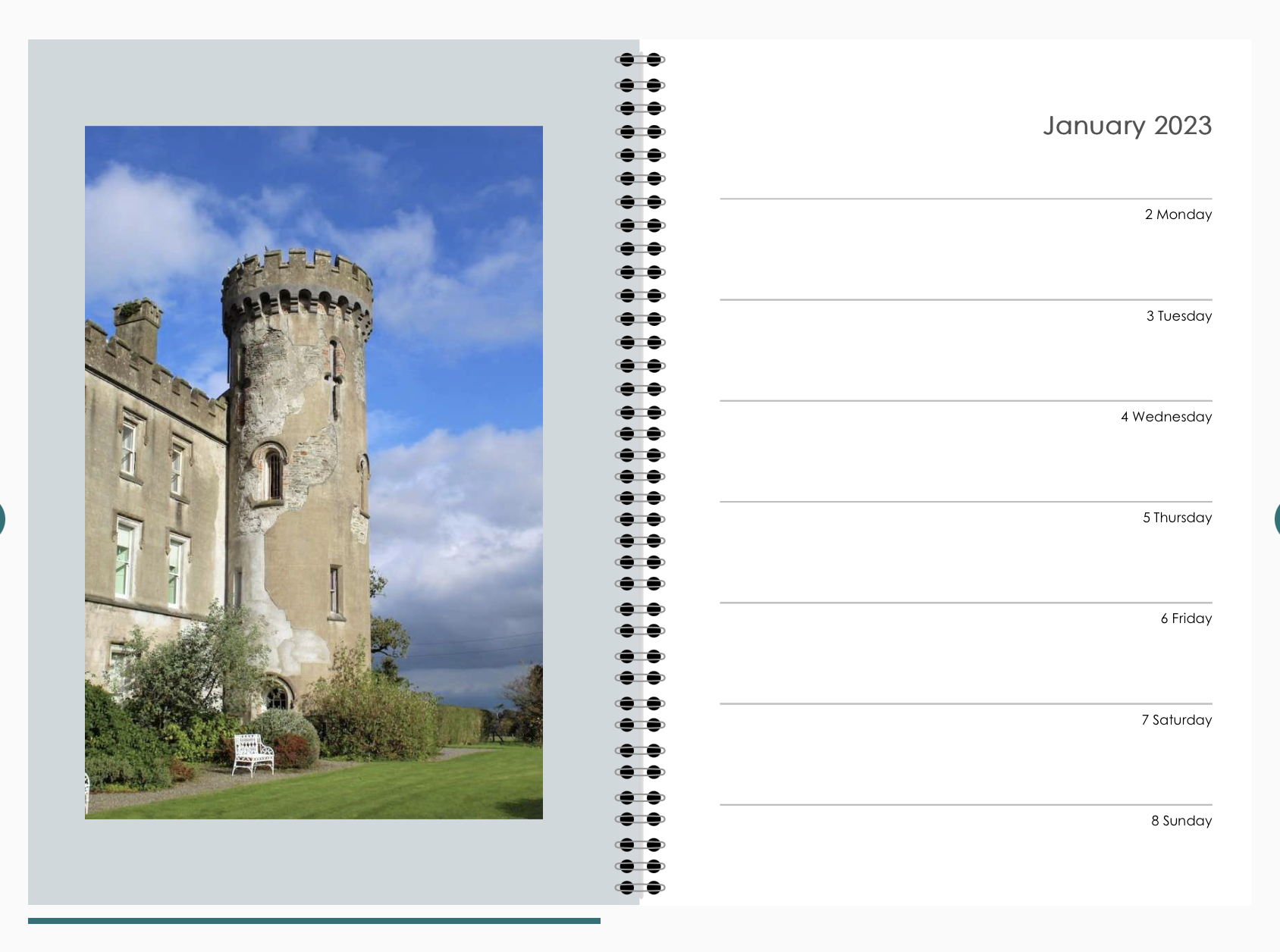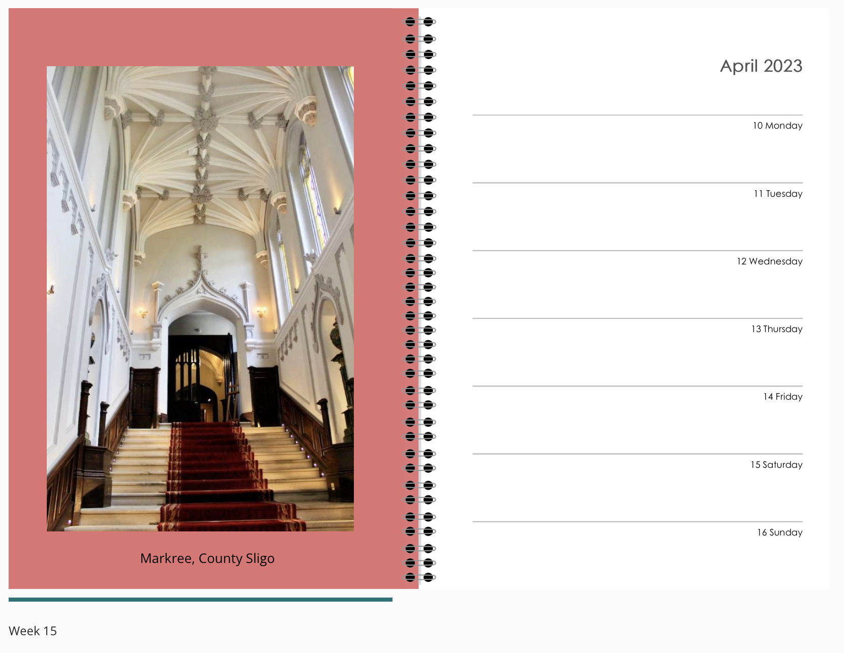 I have made some diaries for 2023, and ordered a few extra ones to sell if anyone is interested. It’s a 14.9 x 21.3 cm date book, €18 each, with a page per week, all with Section 482 houses pictured.