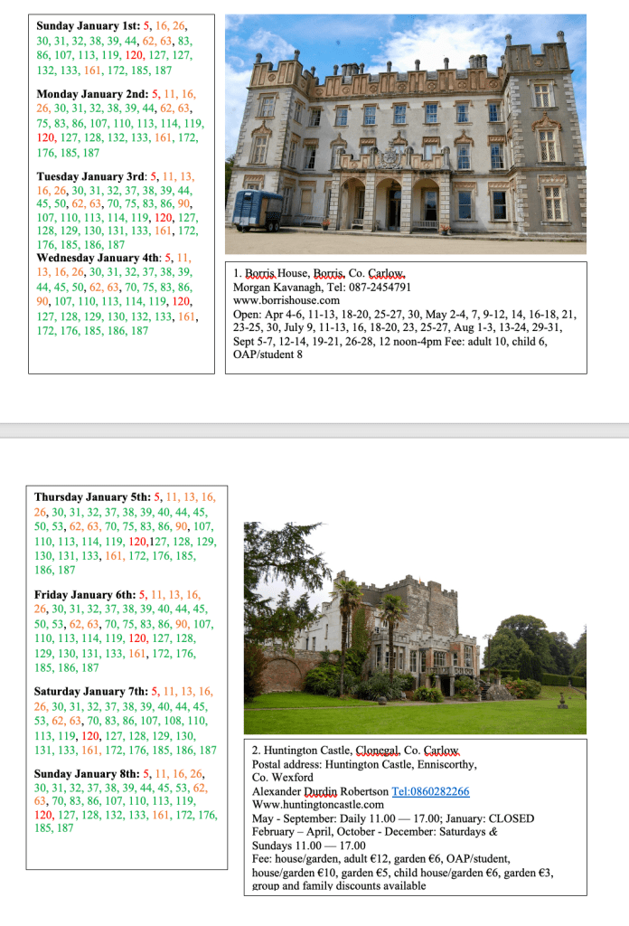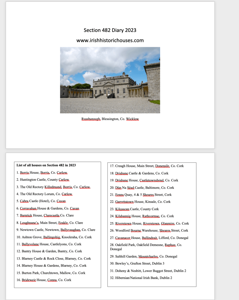 Each year I try to visit as many properties as possible, taking holidays for the most far-flung counties from Dublin, and during Heritage Week, going on a tour of as many properties as possible all over the country, as all the properties are open on those dates (unless they are listed as Accommodation, in which case, they do not have to be open during Heritage Week).