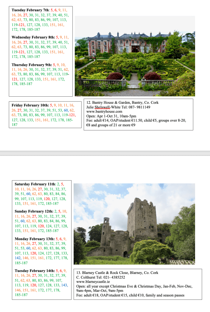 I hope that some of my readers would like to purchase my calendars! It will give you a go-to hard copy for planning your visits to historic houses in Ireland, full of photographs of places to be discovered. (I will publish details as to how to order a copy, and the price, once the dates have been finalised).