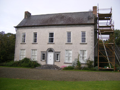 …Its size and massing make it a very notable feature on the landscape and the regular façade and restrain in ornamentation adds to the imposing appearance. The retention of timber sliding sash windows and limestone sills is significant, and adds to the architectural significance of the site. Symmetry is evident in the design and is enhanced by the hipped roof, central chimneystacks and breakfront. The outbuildings, walled garden to the rear, and gate lodge all serve to add context to the site. Keystone reads: ‘WM/AD/1803’.” (see [1])