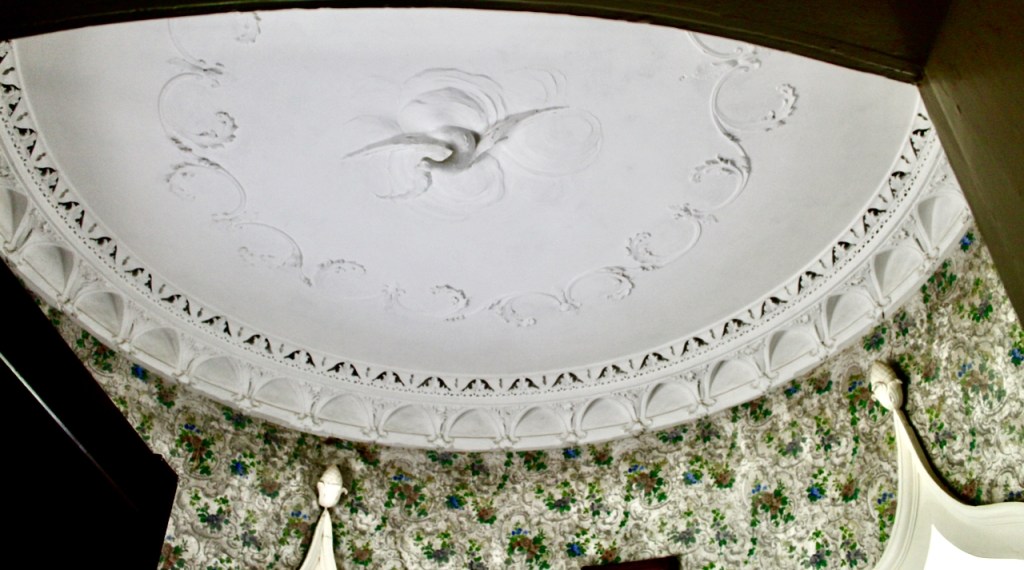 The family continued to intermarry with prominent Irish Catholic families: John and Frances née Wogan’s son Richard (d. 1788) married Margaret O’Reilly, daughter of James O’Reilly of Ballinlough Castle and of Barbara Nugent, another Catholic family. Archiseek tells us that the family remained Roman Catholic until 1774. At this time Richard officially converted to Protestantism, but our tour guide pondered rhetorically “but did he really?” His wife Margaret did not convert.