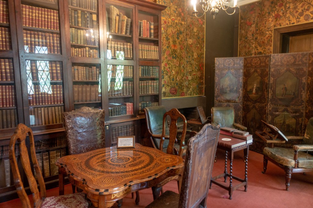 The library wing dates to the seventeenth century and is hung with eighteenth century leather wall hangings.