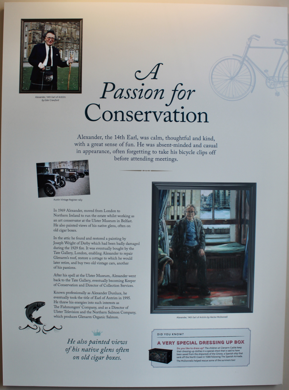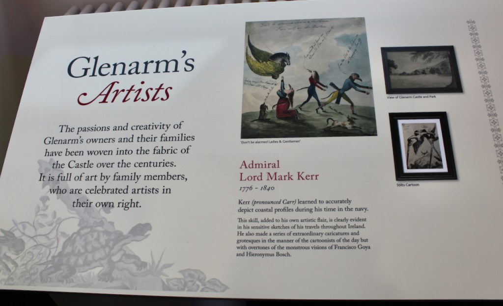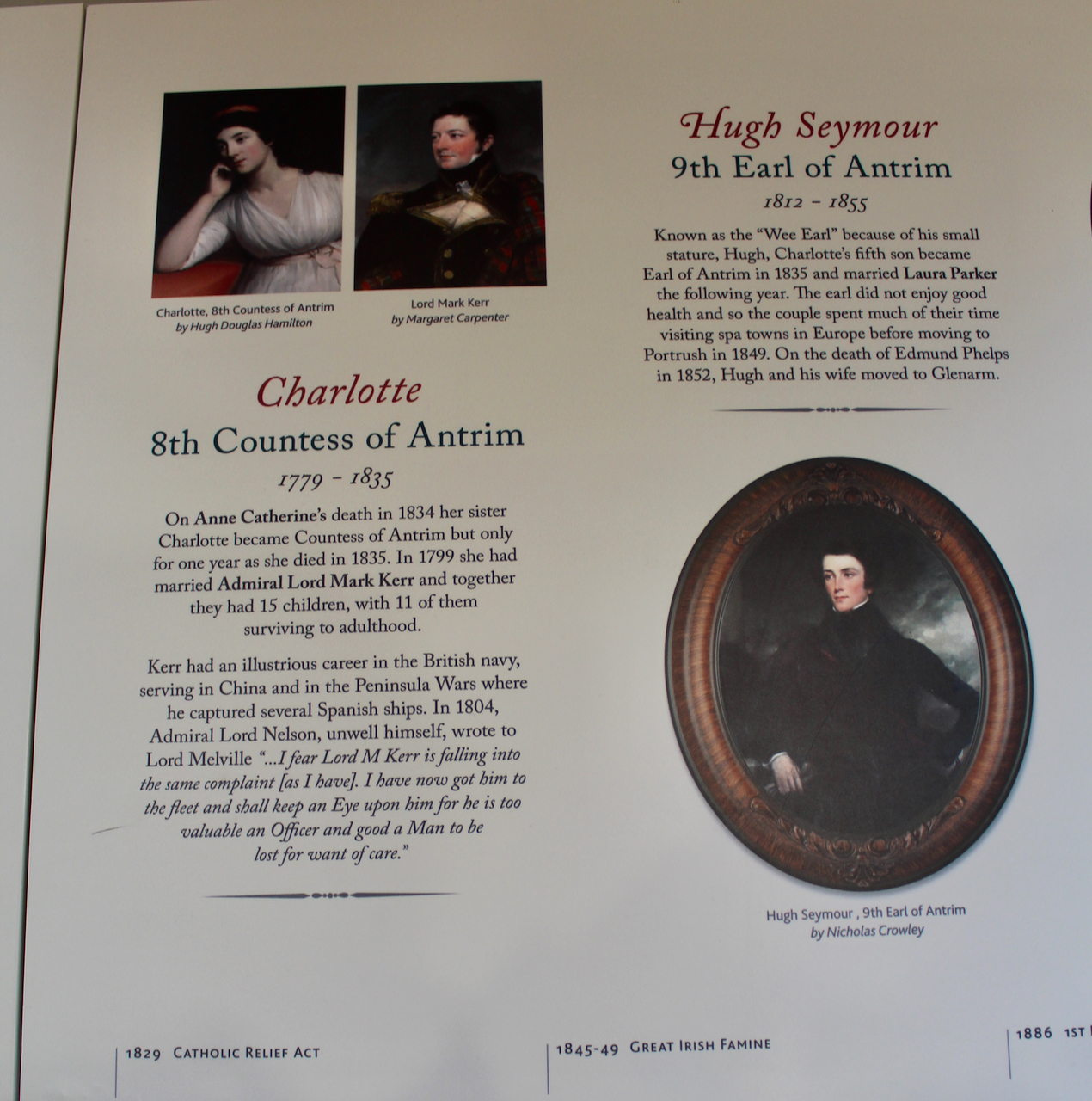 The second daughter, Charlotte 3rd Countess of Antrim married Mark Robert Kerr (1776-1840), son of William John Kerr, 5th Marquess of Lothian, Scotland. An information board tells us that as well as being a military man, he had a fondness for art.