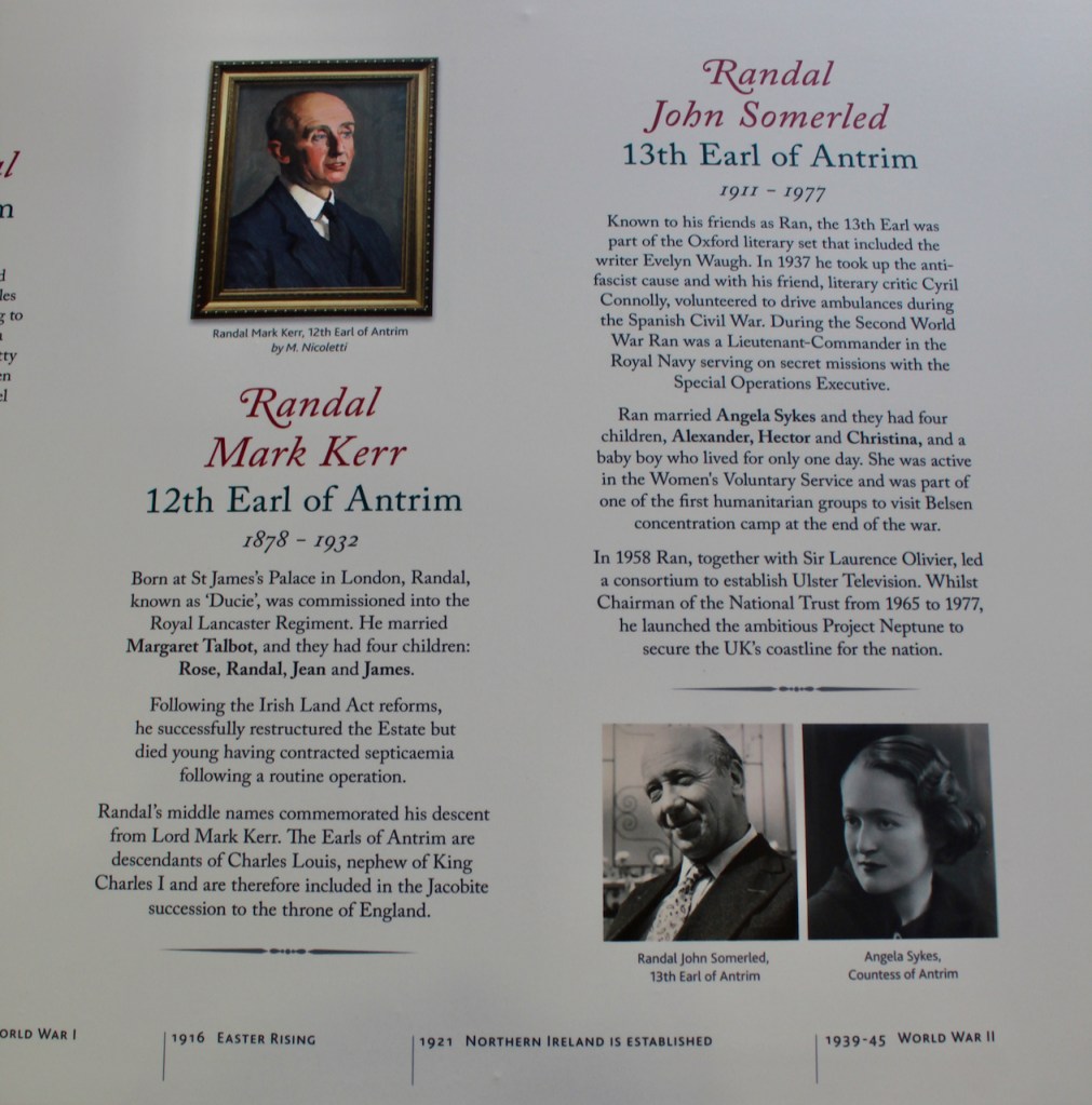 Their son Randal Kerr MacDonnell (1878-1932) became 7th/12th Earl of Antrim in 1918. In 1929 a large fire occurred.