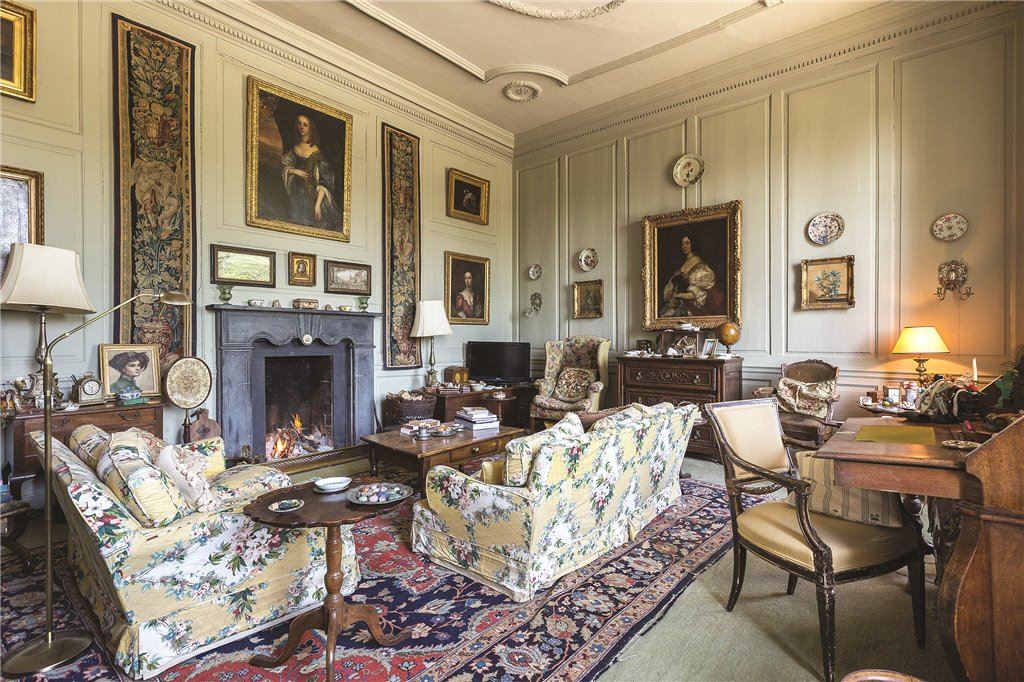 The Drawing Room is on the east side of the house. It has a fretwork ceiling with circular heraldic panels, a panelled dado and quatrefoil cornice. The room connects through a great arch with the rib-vaulted music room to its north. Unfortunately none of the furniture is original to the house but was brought it by the current owners.