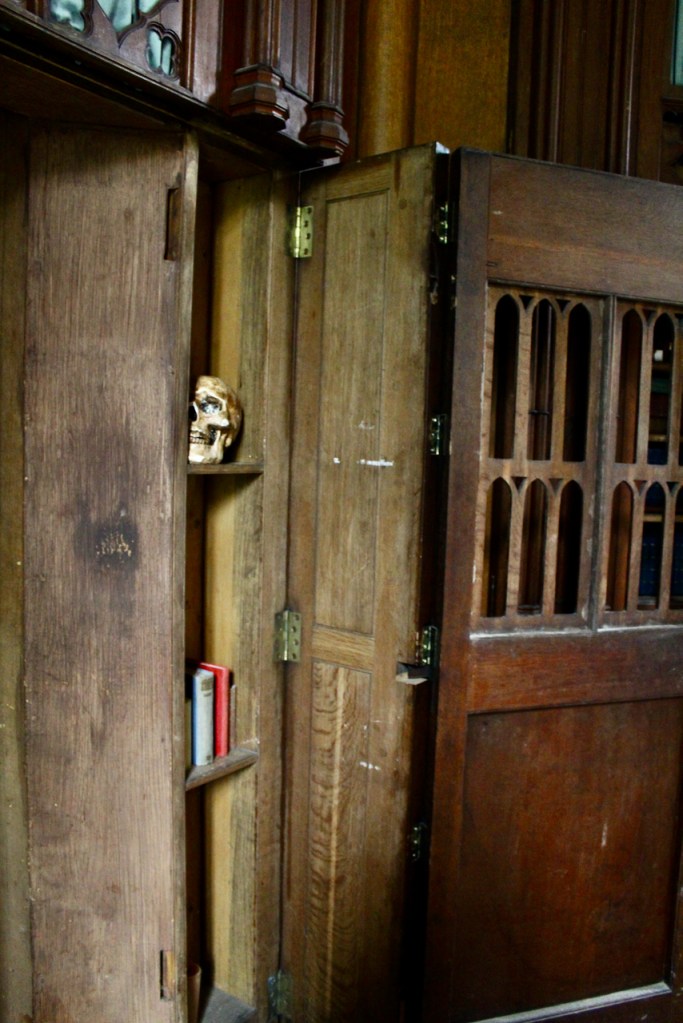The panelling by each bookcase can be opened to reveal more space, and behind one secret door is a small room which leads out to the chapel, the guide told us.