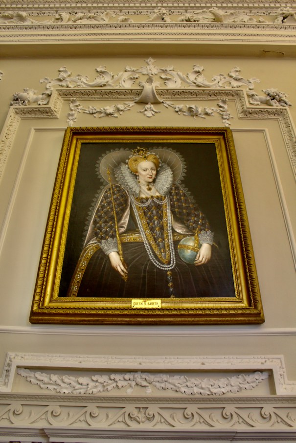 “The magnificent great hall, which stretches almost the whole length of the building is decorated with some of the finest stucco plasterwork in the country. The plasterwork features portraits of Queen Elizabeth and her brother Edward VI and many motifs and emblems associated with the Tudor monarchy.“