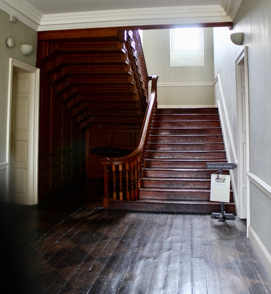 Damer House has a scroll pediment doorway and inside, a magnificent carved staircase. The Irish Georgian Society was involved in saving it from demolition in the 1960s. [for more photographs, see https://theirishaesthete.com/tag/damer-house/ ] The stairs and floor in the front hall are original to the house. The stairs are similar to ones in Cashel Palace, which was the Archbishop’s Palace, and is now an upmarket hotel. See the website of the Irish Aesthete for photographs of this staircase: https://theirishaesthete.com/tag/cashel-palace/