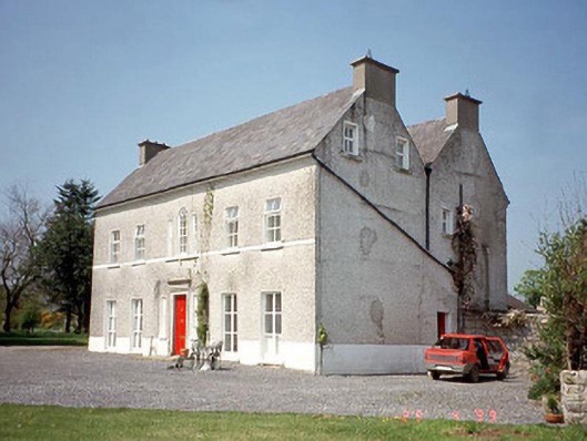 Detached five-bay two-storey farmhouse with dormer attic, c. 1750, with door opening having lugged granite doorcase, sidelights, Venetian window to central bay and gable ends. Refenestrated and extended to rear with double-pitched and lean-to roofs. Interior retains original joinery including open-well staircase.