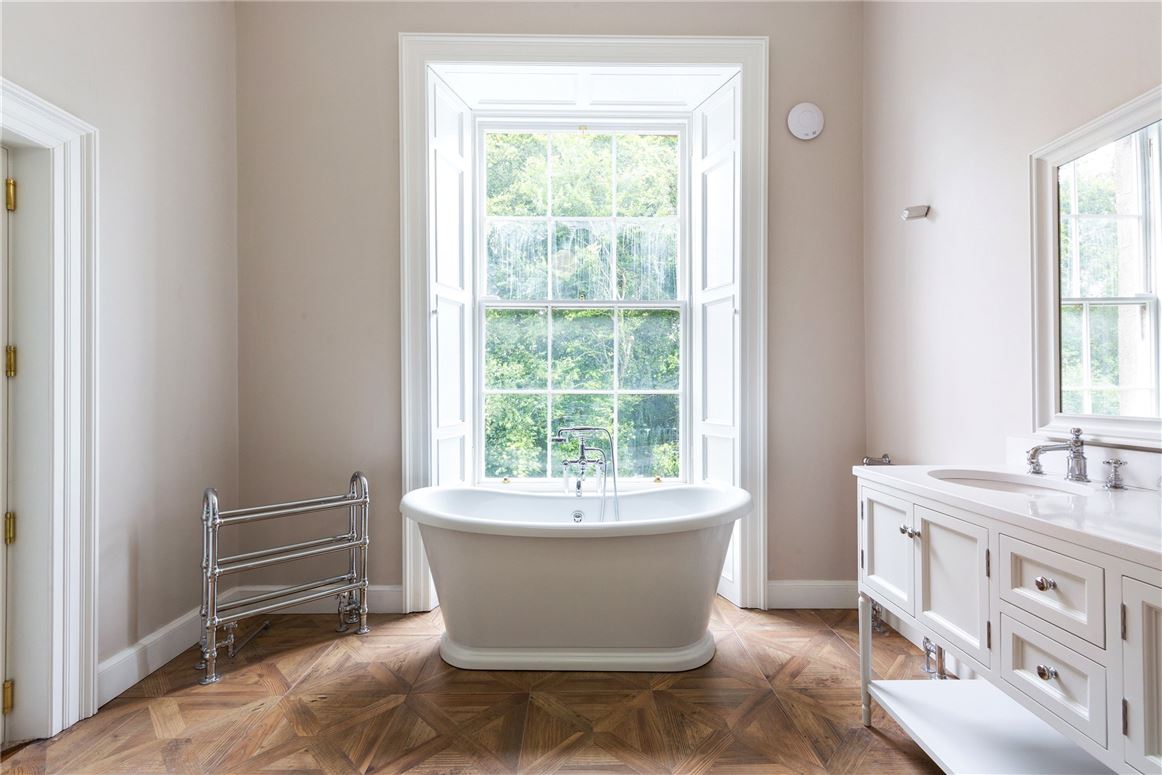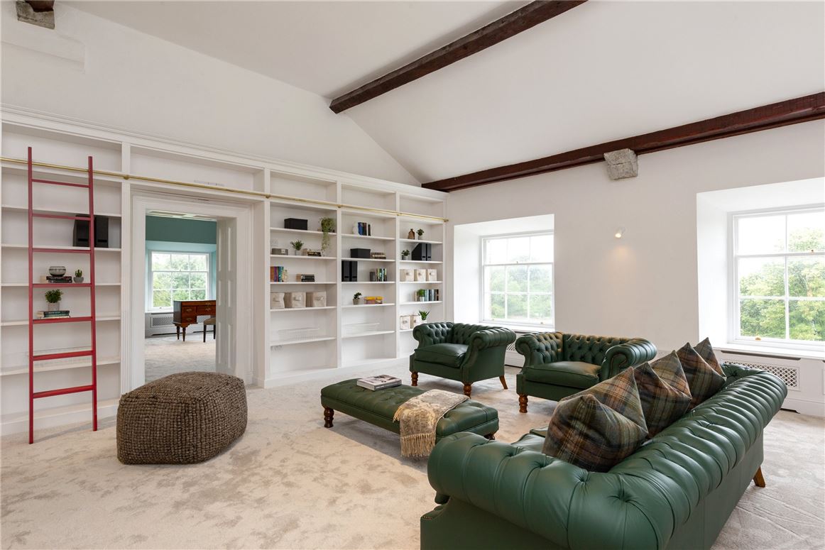 The first floor has four en suite bedrooms, and the top floor a further three bedrooms with two bathrooms, and a library. The utility room is also on the third storey.
