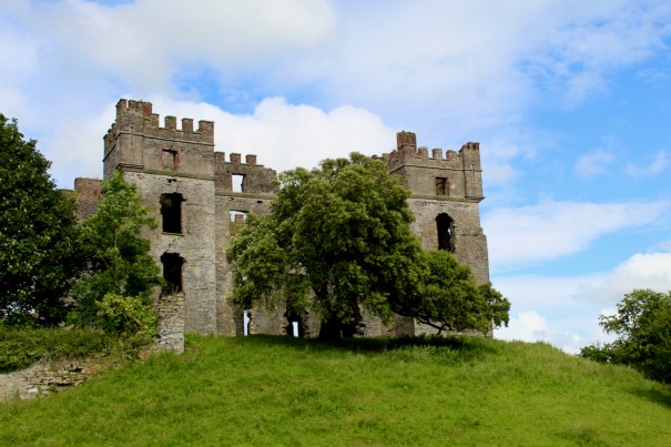 Maurice Craig points out in his The Architecture of Ireland from the earliest times to 1880 that there are a group of similar buildings, built over a period of fifty years or more: Rathfarnham Castle in Dublin; Kanturk for MacDonagh MacCarthy, before 1609; Portumna for the Earl of Clanrickarde, before 1618; Manorhamilton for Sir Frederick Hamilton, probably around 1634; Raphoe, for Bishop John Leslie (the “Fighting Bishop” – see my entry on Castle Leslie https://irishhistorichouses.com/2020/08/07/castle-leslie-glaslough-county-monaghan/) in 1636, and Burntcourt for Sir Richard Everard before 1650. We visited Portumna in County Galway – see my entry https://irishhistorichouses.com/2022/02/14/office-of-public-works-properties-connacht/. The buildings resemble a fort, such as Mountjoy Fort in County Tyrone built 1600-1605. Killenure, County Tipperary, now also a Section 482 property, is similar but has cylindrical flankers, Craig tells us. This last was unroofed by 1793.