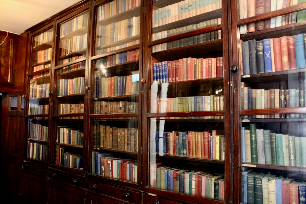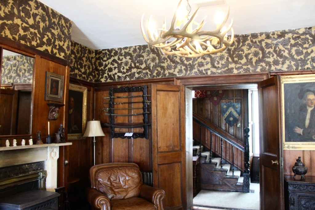 The inside is a real treat, with wonderful family portraits in the hall of oak and what looks like leather wall covering.