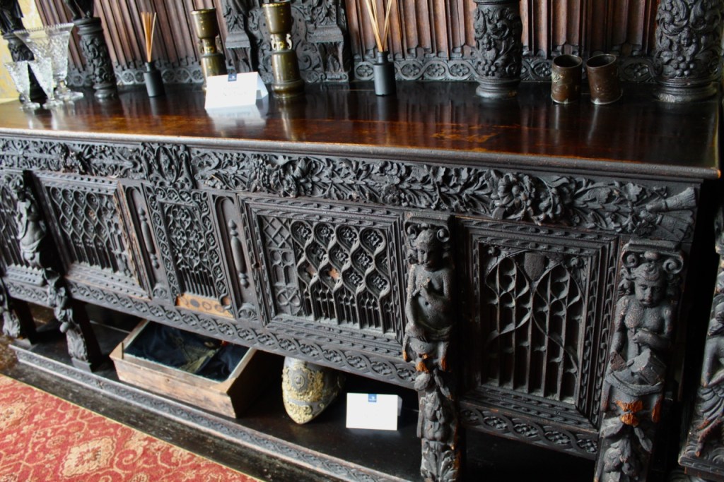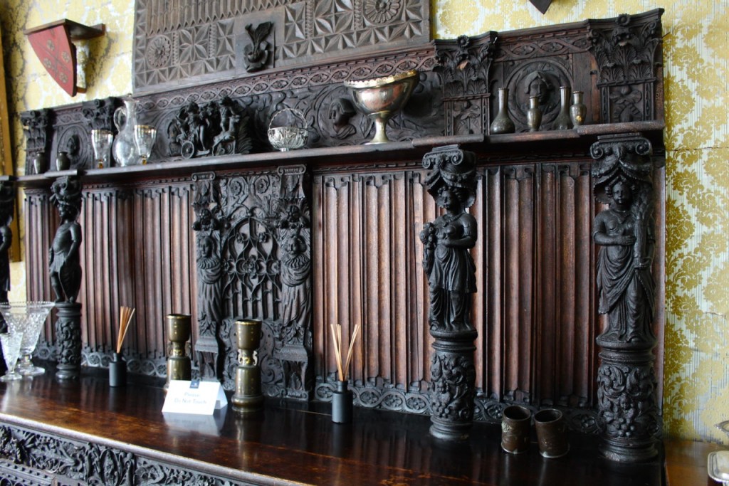 The website tells us about the fire: “Disaster struck again in 1852 when the newly built East Wing went up in flames. The blaze was so fierce that the large quantity of silver stored at the top of the wing ran down in molten streams. The family sent a Bristol silversmith to search the ruins and value the silver by the pound, which he did and promptly disappeared to America with a large part of it! The family still have some of that silver, all misshapen from the fire. The East Wing was rebuilt soon after the fire and The Castle has remained unchanged in appearance ever since.“