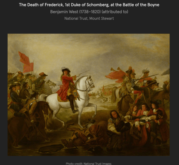 In 1690, after the accession of King James II to the throne, Richard’s home in Castetownshend was unsuccessfully beseiged by 500 Irishmen led by the O’Driscolls, a family who had owned the land before Townesend [for more on the O’Driscolls, see my entry on Baltimore Castle, https://irishhistorichouses.com/2023/12/28/dun-na-sead-castle-baltimore-co-cork-981-x968/ ]Townesend died in 1692, leaving seven sons and four daughters. [see 3]