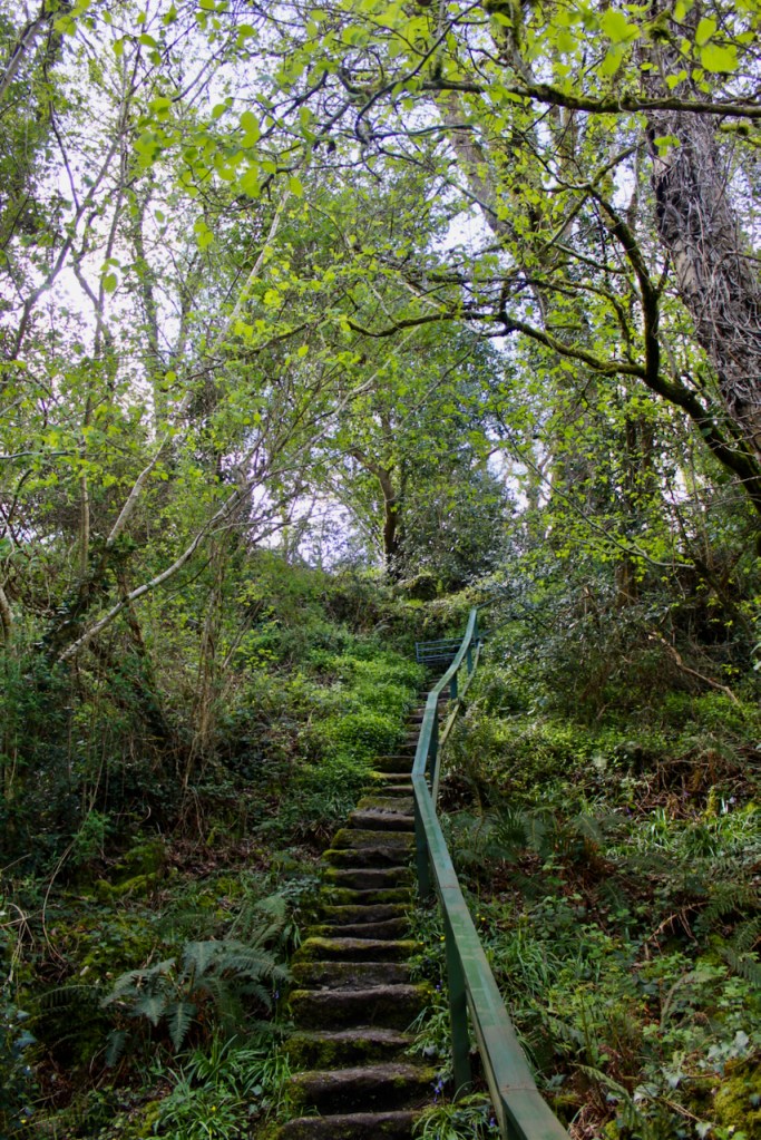 We could have walked further along the Slaney but chose to head back as our stomachs were growling and I looked forward to sampling the café. We tackled the granite hand-cut 100 steps back toward the gardens. We crossed some delightful bridges along the way and stopped to admire a dolmen.