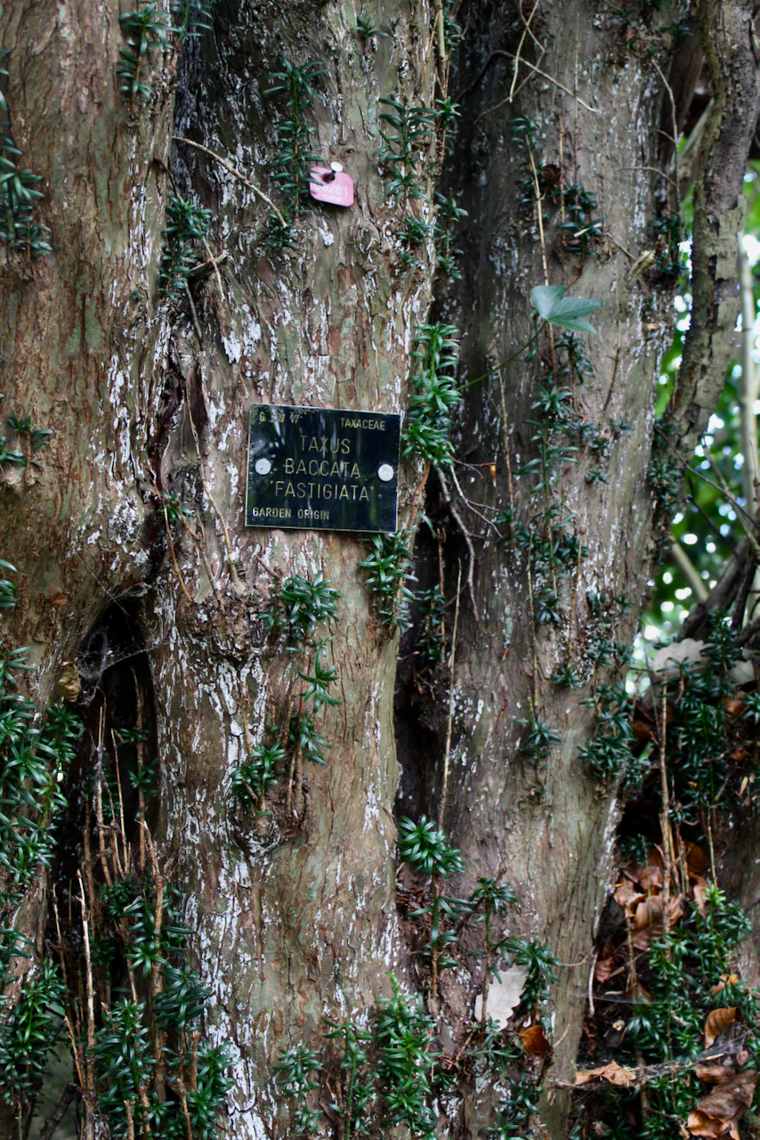 Around the lake are mature conifers that were planted in the 1800s, including a giant Wellingtonia which commemorates the Battle of Waterloo. [9] Stephen and I enjoyed learning from the identifying tags on the trees. The garden is a haven for wildlife, including red squirrels, otters and peacocks – though the only peacock we saw was inside a window of the house!