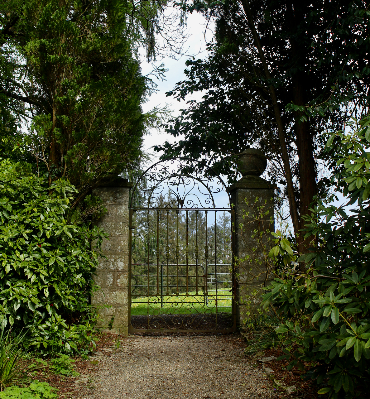 Feilding Lecky-Watson erected the Myshall Gate at the far side of the lake. The gates were salvaged from Myshall House, one time home of the Cornwall Bradys, cousins of Lecky-Watson. My great great grandparents married in Myshall church in 1843! A newer church in Myshall has replaced the one in which they married. Myshall House was burnt down in 1922. The two granite balls placed on top of the stone piers were moved from what was the Archery Lawn, now the lawn by the Azalea Walk.