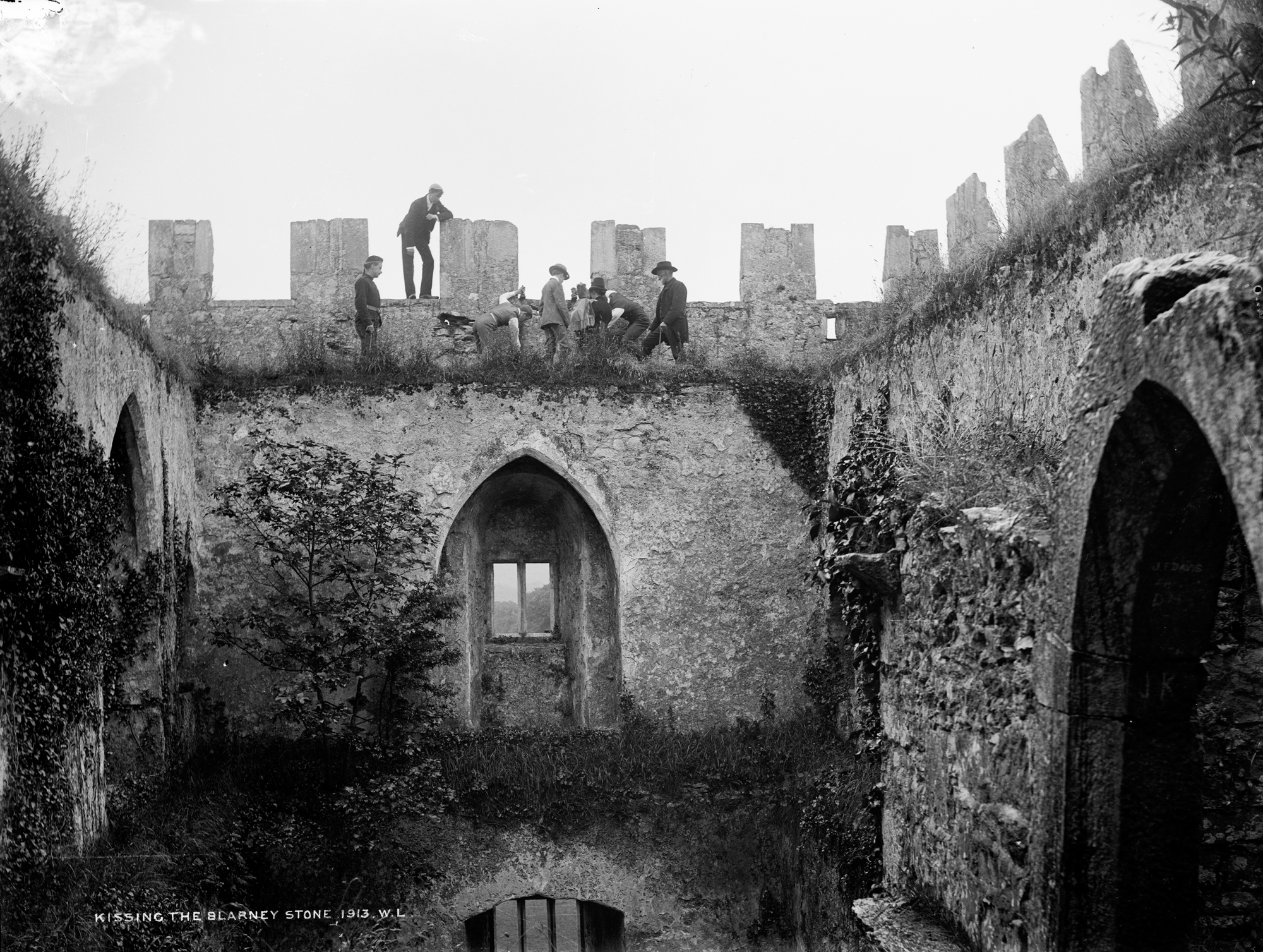 Photograph dated around 1897,National Library of Ireland Creative Commonson flickr.photo by Chris Hill, 2015, Tourism Ireland, Ireland’s Content Pool.Winston Churchill at Blarney Stone, 1912.Photograph from National Library of Ireland Creative Commons.