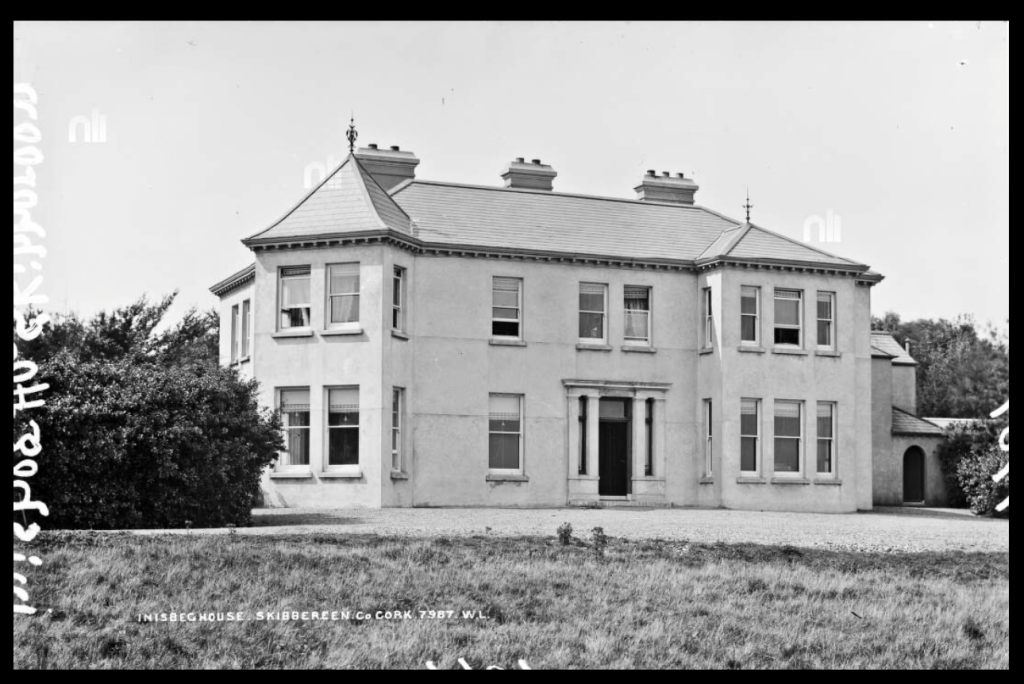 “This house is marked Ashton Grove on the first Ordnance Surve map. John Cotter was the proprietor of Ashton, Cork, in 1814 and T. Cleary of Ballingohig in 1837. Thomas J. Cleary held the property from Henry Braddell at the time of Griffith’s Valuation when the buildings were valued at £22. Cleary held a cornmill from Braddell in the townland of Kilrussane. James Fitzgerald held 122 acres of untenanted land and buildings valued at £26+ in 1906.” [2]