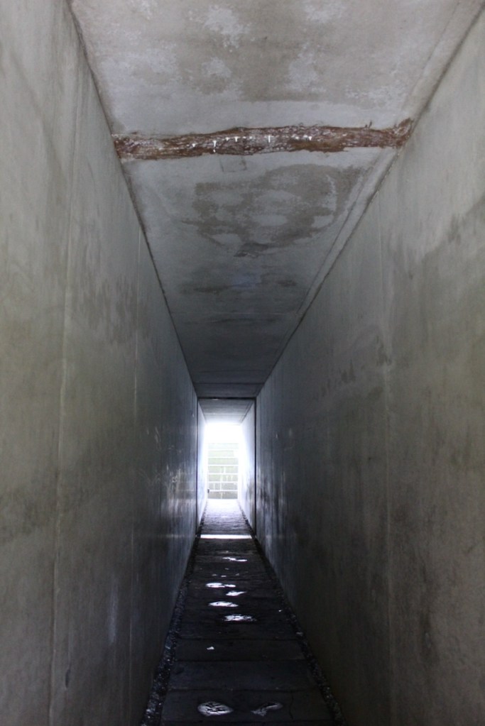 This room would have been the cellar chamber when first built, and would have had a wooden floor above, supported by still-present stone supports in the walls. The room on the upper wooden floor was the Great Hall. Originally, an information board tells us, the lower storey probably housed servants or junior members of the household. By the eighteenth and nineteenth centuries it had become a wine cellar, as evidenced by some brick-lined shelves.