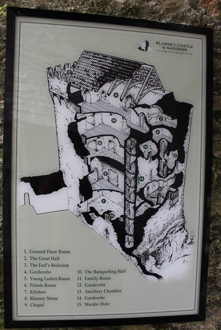 The castle we see today is the third structure that was erected on the site. In the tenth century there was a wooden hunting lodge. Around 1210 this was replaced by a stone structure, which was demolished for the foundations of the third, current, castle, built by Cormac Laidir (‘the strong’) MacCarthy in 1446. To put it into chronological perspective, this is around the same time that Richard III deposed King Edward V and nearly fifty years before Christopher Columbus “discovered” the “New world” in 1492 (see the terrific chronology outlined in James Lyttelton’s Blarney Castle, An Irish Towerhouse). He built a slender self-contained four storey tower house, which is now called the northwest tower.