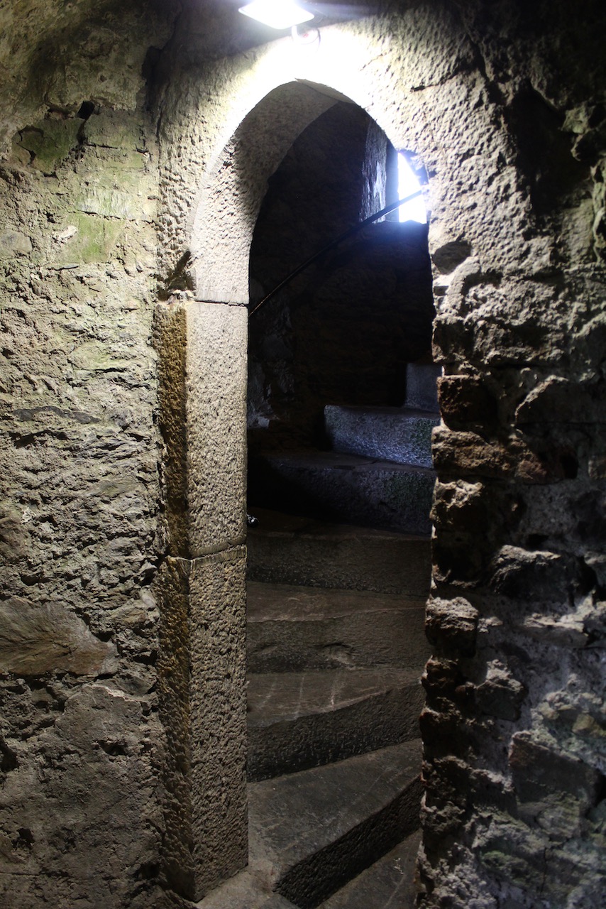 We climbed a stone spiral staircase inside the tower to see the upper chambers. As usual in tower houses, the narrow spiral staircase was built partly for defense.