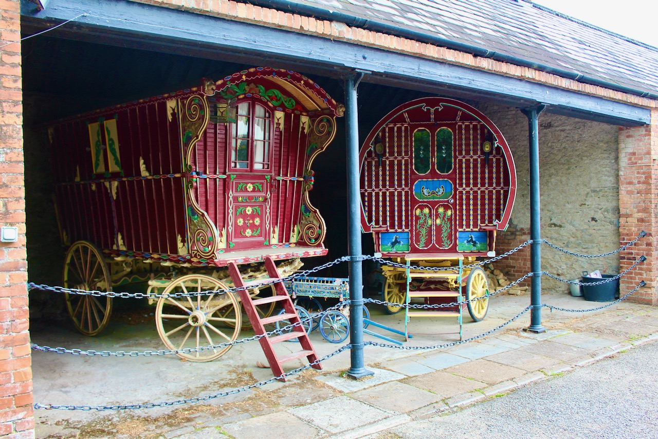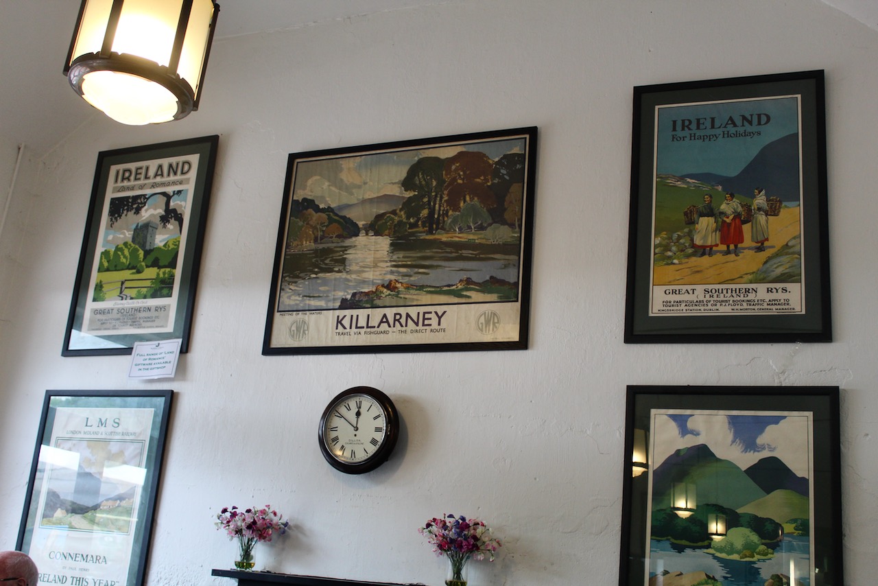 We headed for the coffee shop after our perusal of the Castle. In the yard they have beautiful barrell vaulted wagons, and in the cafe, lovely old travel advertisements.