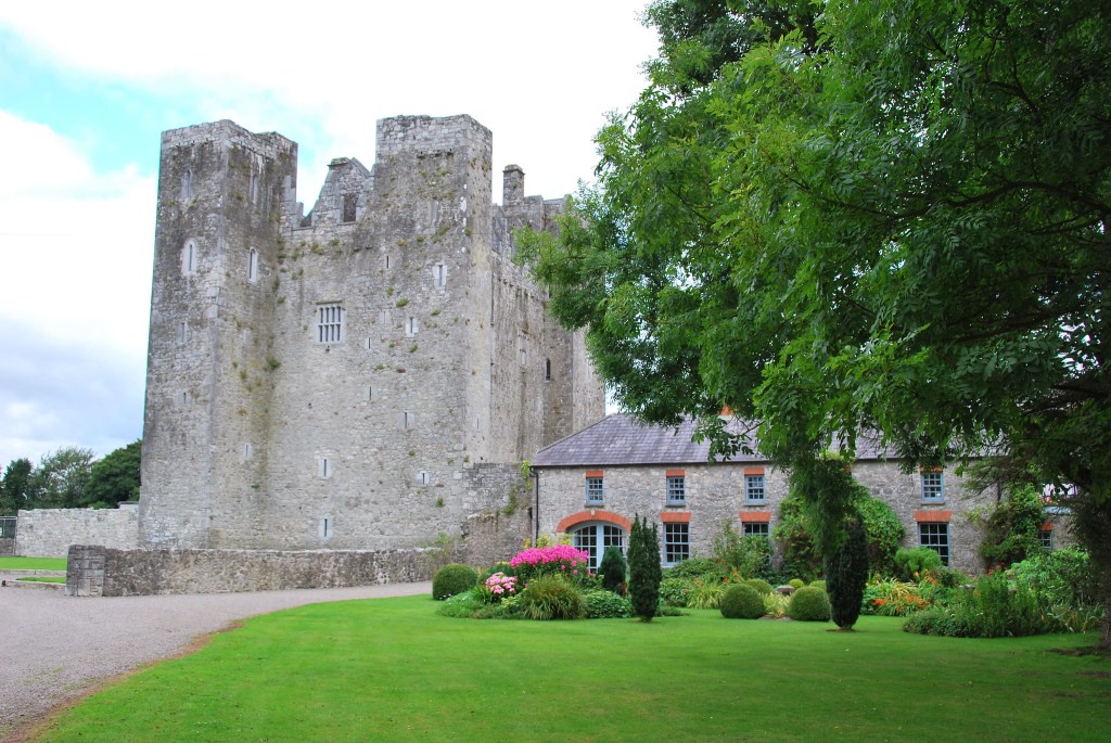 A bawn surrounded the tower house: a defensive area of about eight acres surrounded by a wall. Maurice Craig tells us in his book The Architecture of Ireland from the Earliest Times to 1880 that the word bawn comes from the Irish name “bádhún” meaning an enclosure for cattle. Animals and people took shelter within the bawn in times of danger. The castle was self-sufficient and the bawn would have been a hive of activity with tanners, blacksmiths, masons, woodcutters, carpenters, livestock keepers, horses, cows, pigs, poultry, butchers, cooks, gardeners and attendants. Part of the bawn wall remains.