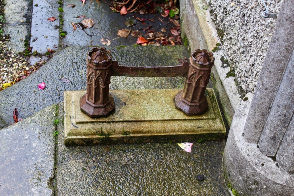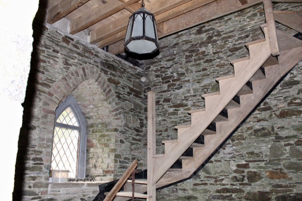 We parked, and knocked on the front door, which was picturesque in its Gothic pointed arched stone setting, with roses growing over the top of the door. The medieval-style studded door with ancient looking pull handle and Georgian door knocker is in the castellated two storey wing.
