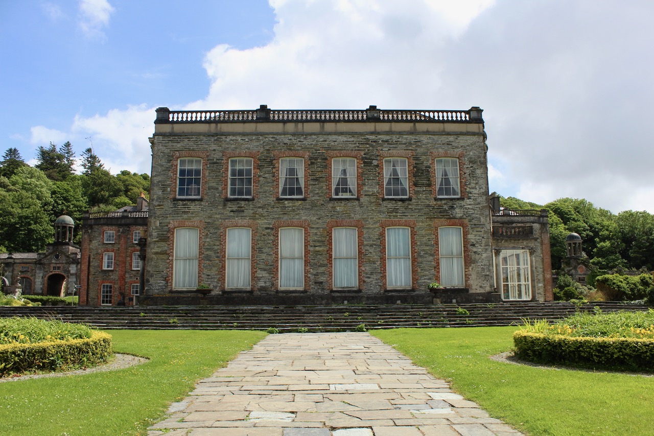Upstairs the upper landings open on three sides through rounded arcades with Corinthian pilasters, and the bedrooms are off the arcaded gallery. [10] The Adam Revival friezes and late eighteenth century Neoclassical chimneypieces reputedly came from Ardrum. [11] We did not get to see the back of the house from the outside as the gardens behind are private, but there is a lake behind the house.