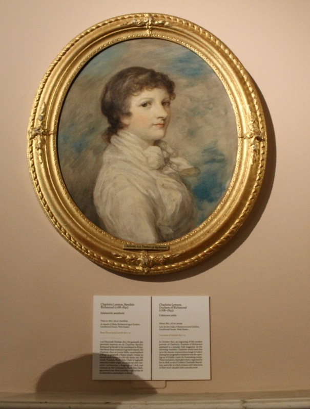 The small medallion in the centre is Lady Louisa by Hugh Douglas Hamilton. The one of the two girls on the right is of Louisa Staples and her sister, by Hugh Douglas Hamilton. William James Conolly (1712-1754) was the nephew of William Conolly who built Castletown, and he inherited the estate. He was the father of Thomas Conolly (1734-1803). Thomas’s sister Harriet married John Staples, and their daughter was Louisa Staples. Louisa married Thomas Pakenham (1757-1836). It was their son, Edward Michael (1786-1849) who inherited Castletown, and added Conolly to his surname, to become Pakenham Conolly.The pastel on the top left is Thomas Conolly (1734-1803), Louisa’s husband.Thomas Connolly of Castletown by Hugh Douglas Hamilton (1739-1808), courtesy Adam’s auction 28 March 2012.The parents of Louisa and Emily: Sarah Cadogen (1705-1751) and Charles Lennox (1701-1750) 2nd Duke of Richmond.Pastel of Lady Louisa Lennox, from the circle of Geoge Knapton, c.1747, it depicts Lady Louisa at the tender age of four. Louisa was the daughter of Charles Lennox, 2nd Duke of Richmond, and his wife, Lady Sarah Cadogan. Her parents died when she was eight years old, and both she and her two younger sisters, Sarah and Cecilia, went to live with their older sister Emily, Countess of Kildare, in Ireland.Charlotte Lennox née Gordon (1768-1842), Duchess of Richmond, Vicereine 1807-1813, wife of Charles Lennox, 4th Duke of Richmond.