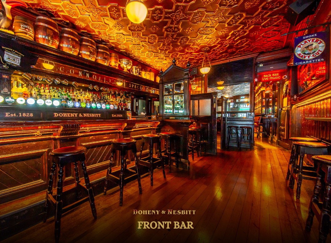 Doheny & Nesbitt, a popular bar on Lower Baggot Street, occupies what was once a residence, built around 1790. Now it holds one of the finest Victorian pubs in Dublin.