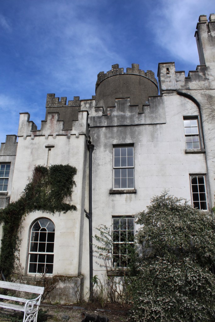 The National Inventory tells us that it was designed around 1847 by Daniel Robertson. It was built for William McClintock-Bunbury (1800-1866). Around 1953, it was truncated and reordered, to make it more liveable, and this was designed by Alan Hope.